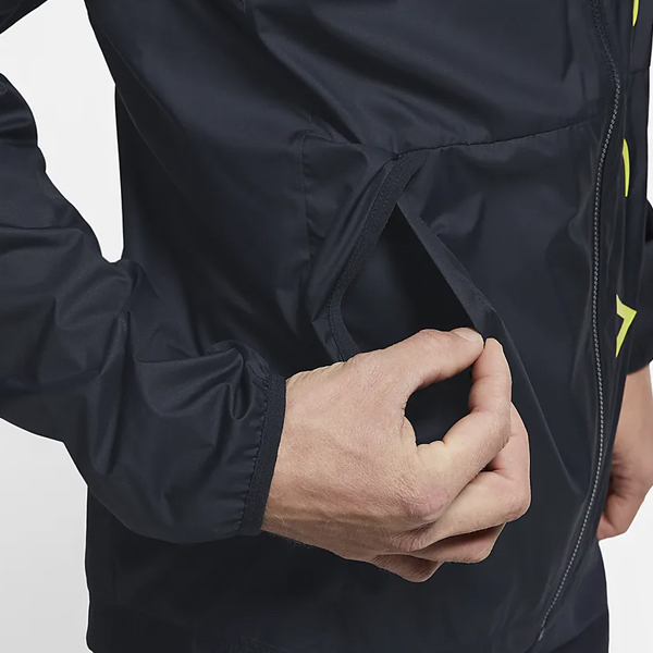 日本未展開のオールウェザーライトジャケット。一般的にウインドブレーカーとかレインジャケットと呼ばれるものです。今シーズンのウェアに採用されているエンブレムなしのデザイン。裏地はメッシュ素材、背中にベンチレーションがついており、電車のなかなど暑くなりやすい所でも内部に熱がこもらない作りになっています。とても軽量なので、丸めてバッグに入れておくのもいいかもしれません。 |