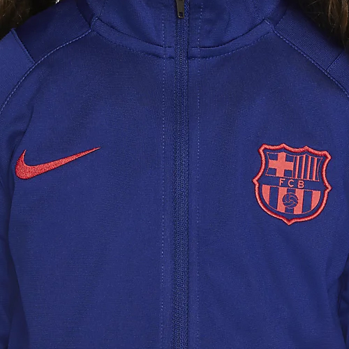 FCバルセロナのオフィシャルコレクション。日本で販売されていない子供用ニットトラックスーツです。伸縮性のあるニットタイプ。ジャケットとパンツの両サイドにポケットがついています。 速乾性の高いDRI-FIT素材により、さらりと快適な着用感です。首と裾はリブでフィット感と保温力をアップ。スリムタイプのパンツの裾にはジッパーが付いています。 |