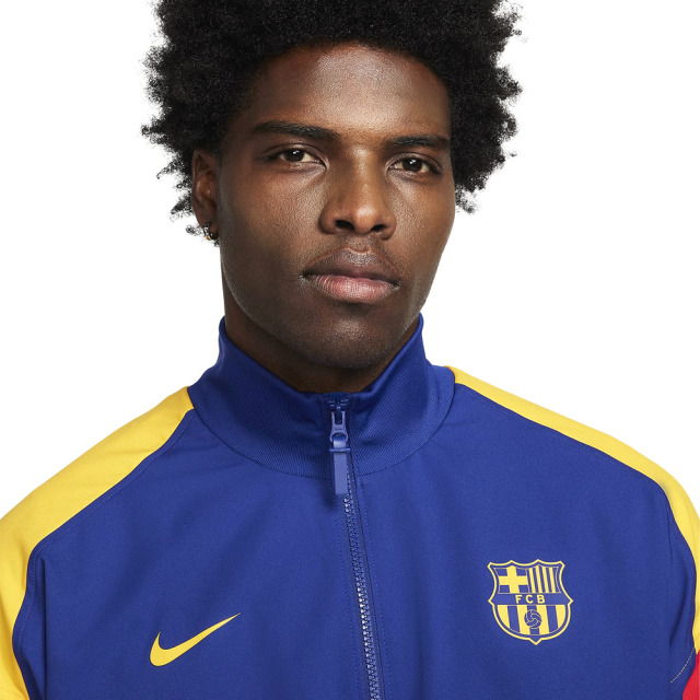 このFC バルセロナ トラックジャケットは、試合前のウォームアップやお気に入りのチームを応援するのにぴったりなジップアップデザイン。 サッカー界の新星たちのために、細部までこだわりました。ゆったりとしたフィット感と速乾性を高めるテクノロジーの組み合わせにより、涼しい状態で落ち着いてスキルアップに集中できます。 |