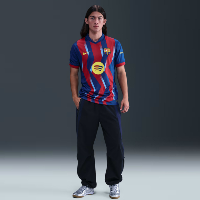 20年前、FCバルセロナはマドリードで3対0の大勝でゲームを飾りました。この試合は、ひとりの不動のレジェンドを生み出し、新たな伝説の始まりを告げました。このジャージーは、3つのゴールそれぞれを象徴するディテールと、そのうち2点を決めて観客を魅了したブラジル人選手を称えるデザインで、その歴史的な日を称えています。モデルは身長185cmでMサイズを着用。 |