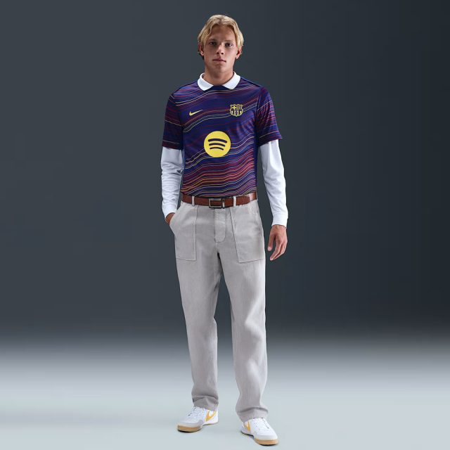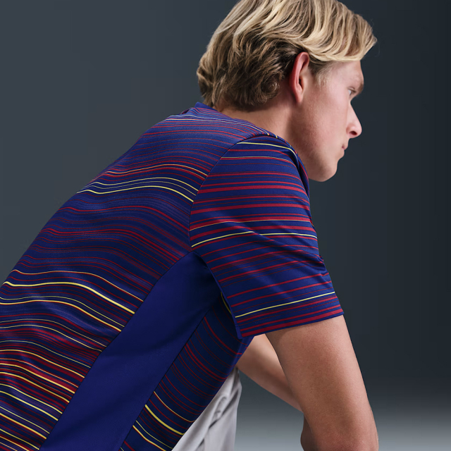 Dri-FITテクノロジーを使用した、スリムフィットのFC バルセロナ トップ。トレーニングが激しさを増しても涼しい状態をキープします。モデルは身長185cmでMサイズ着用。 |